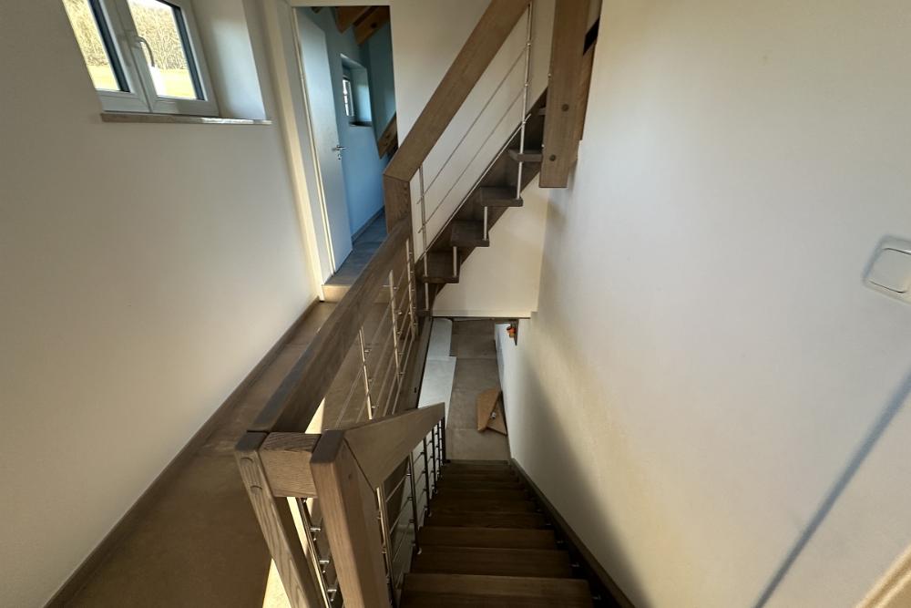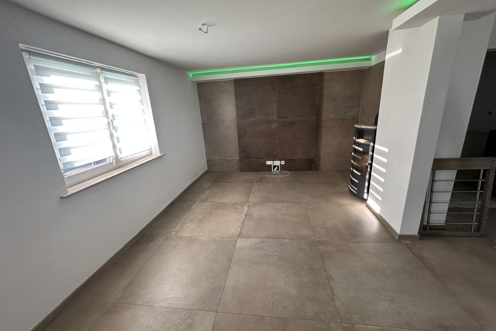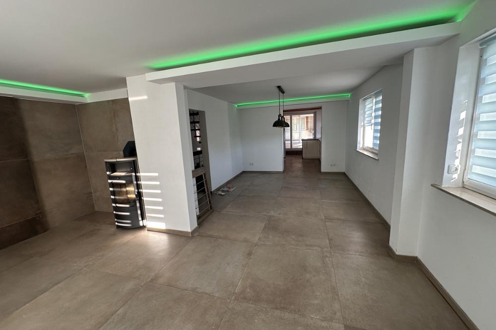 Kaminofen im Wohnzimmer beheizt, im EG wurden komplett Fußbodenfliesen verlegt,