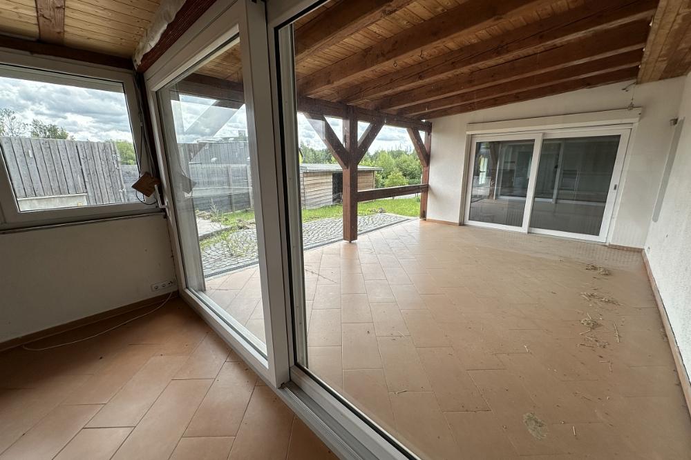 gibt es neben der überdachten Terrasse einen beheizbaren Wintergarten mit Fenstern