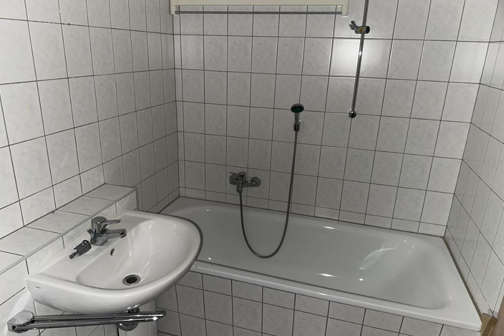 - Bad gefliest mit Wanne, Handwaschbecken und WC