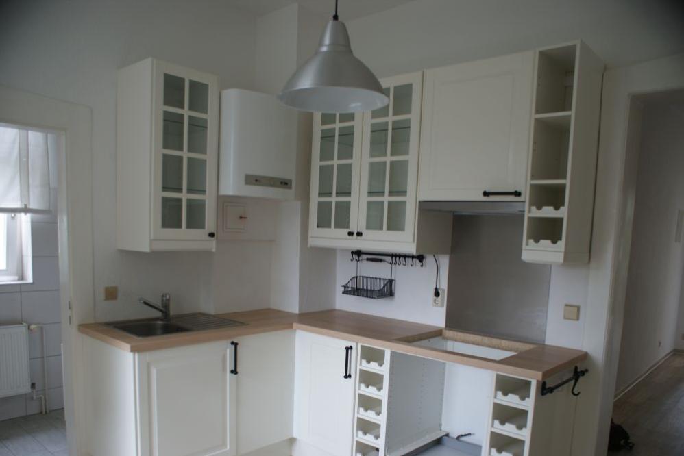 - Küche mit Fliesenspiegel, E-Herdanschluss sowie WM-Anschluss
