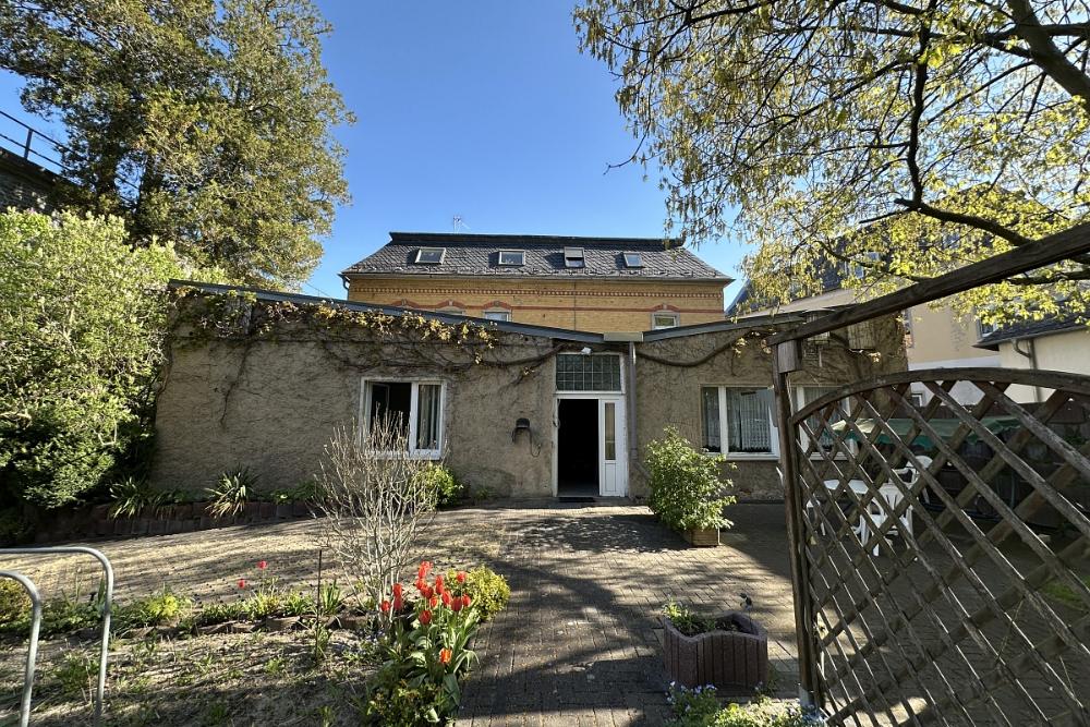 Das hinter dem Haus liegende Gartengrundstück endet mit dem Mandauverlauf,